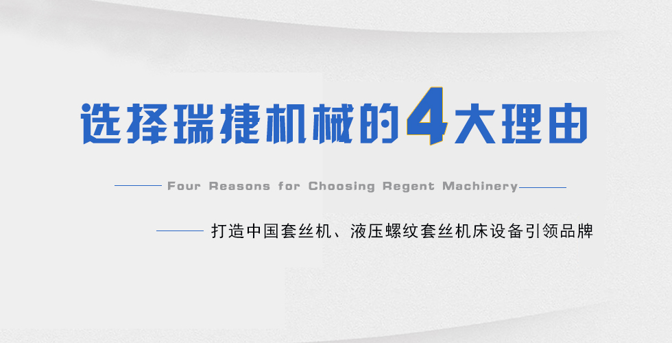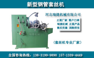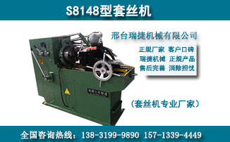 瑞捷套絲機設備采用液壓裝置成功解決勞動強度大,效率低,且無定位裝置,絲扣長短難控制等弊端,可一次型完成螺紋加工成型且螺紋牙形飽滿光滑。套絲機的主要部件及結構是由套絲機床的傳動系統(tǒng),支架系統(tǒng),切線板牙頭,定位裝置及液壓系統(tǒng)組成,工作時只要將工件裝入夾鉗,其余程序將自動完成,操作簡單,通俗易懂,瑞捷套絲機廠家直銷,質量有保證,減少不必要的中間環(huán)節(jié),為客戶帶來實實在在的優(yōu)惠政策,歡迎新老客戶洽談合作事宜和來電咨詢.